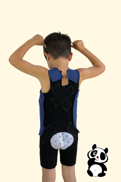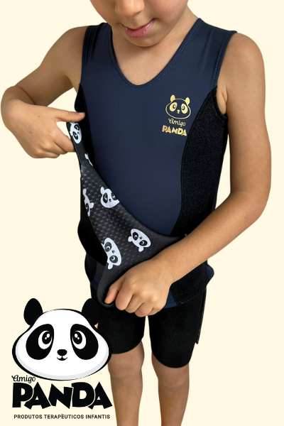 O Body Panda® de Rotação é o colete postural infantil mais completo da linha Amigo Panda®, desenvolvido para corrigir tronco, quadris e pernas. Inclui perneiras reguláveis que permitem ajustar a rotação interna ou externa dos membros inferiores, favorecendo equilíbrio, marcha e prevenção de deformidades.